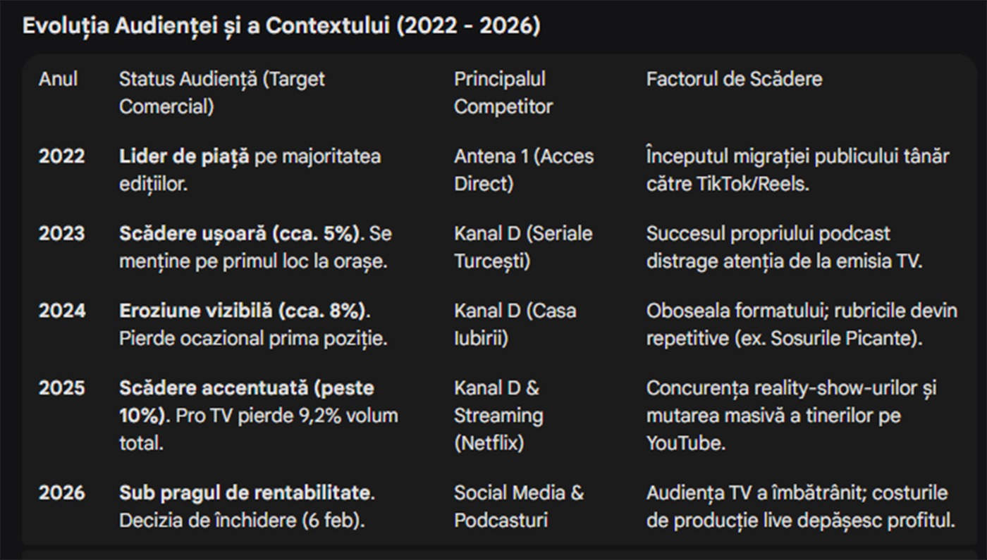 Declinul audiențelor și schimbările din emisiune