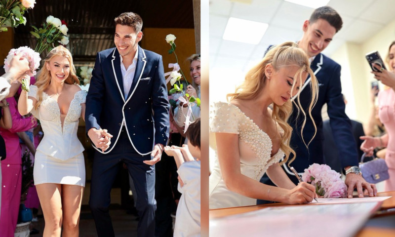 Pentru această zi specială, Andreea Bălan a optat pentru o rochie de mireasă neconvențională, care să îi reflecte personalitatea vibrantă și stilul modern. În locul tradiționalei rochii lungi, artista a ales o rochiță mini, care i-a evidențiat formele și i-a conferit un aer fresh și tineresc. Accesorizată cu sandale cu toc argintii și cu părul aranjat în bucle lejere, Andreea a strălucit cu un zâmbet larg și o energie molipsitoare.