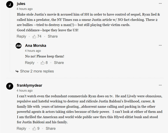 Reps for both Lively and Reynolds have not publicly commented on the reports, maintaining privacy as the legal proceedings continue. However, it is clear that the couple is navigating a challenging period, balancing professional setbacks with their personal lives.