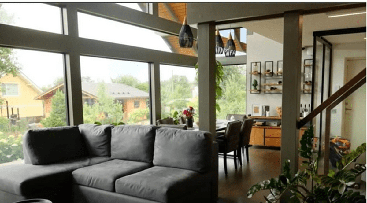Arhitectura vilei este contemporană, caracterizată prin linii clare și o paletă cromatică caldă, care combină nuanțe naturale ce creează o atmosferă primitoare. Fațada este dominată de ferestre mari, care permit luminii naturale să inunde interiorul, accentuând senzația de spațiu și deschidere.