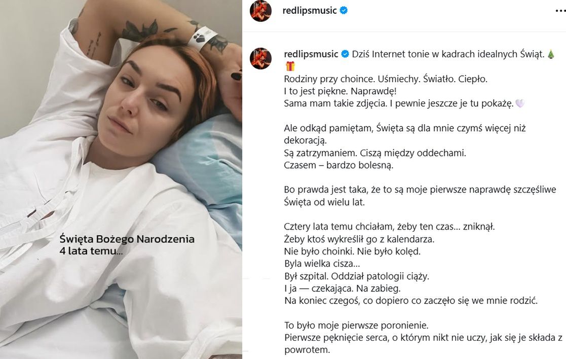 Lazer gorzko o poronieniu w święta. “Był szpital. Oddział patologii ciąży”