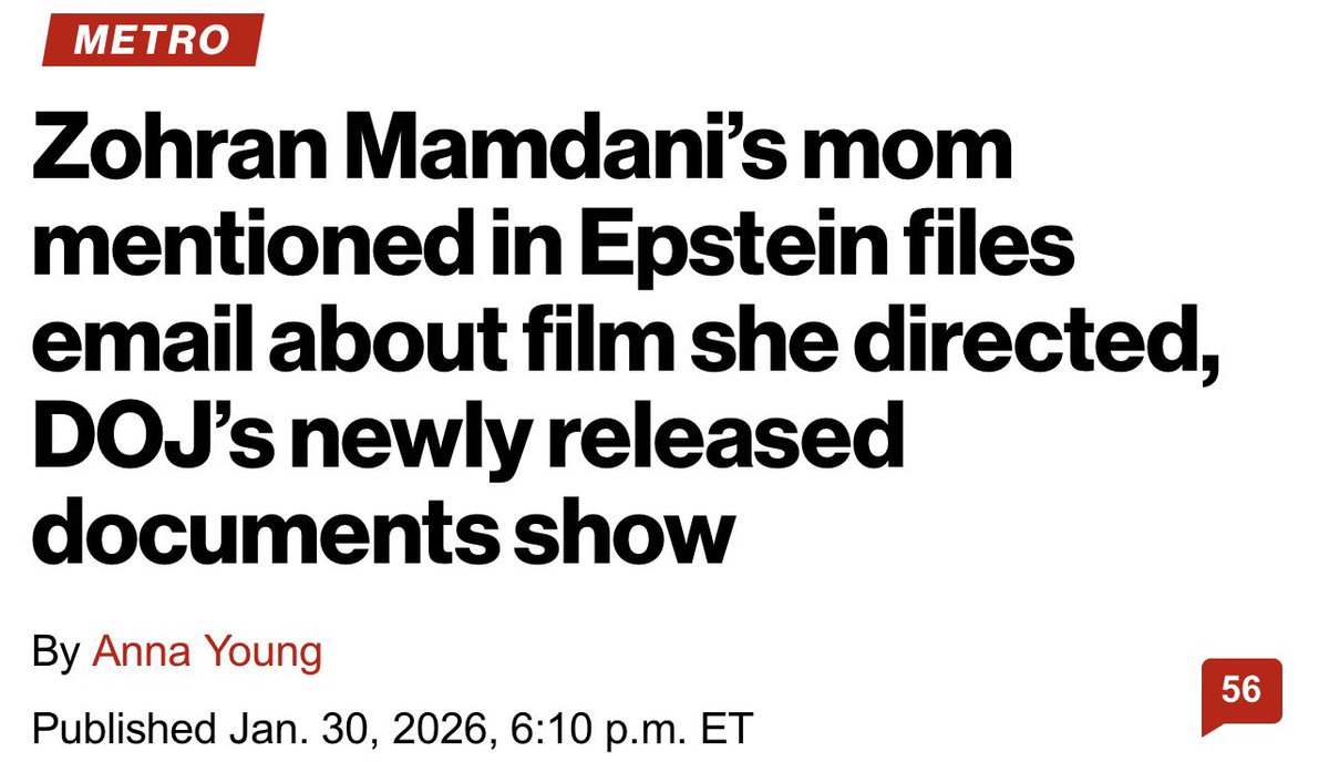 Mamdani’s mother appeared in the Epstein files, which claim she sold her child to a gay billionaire to help “Amelia” debut.