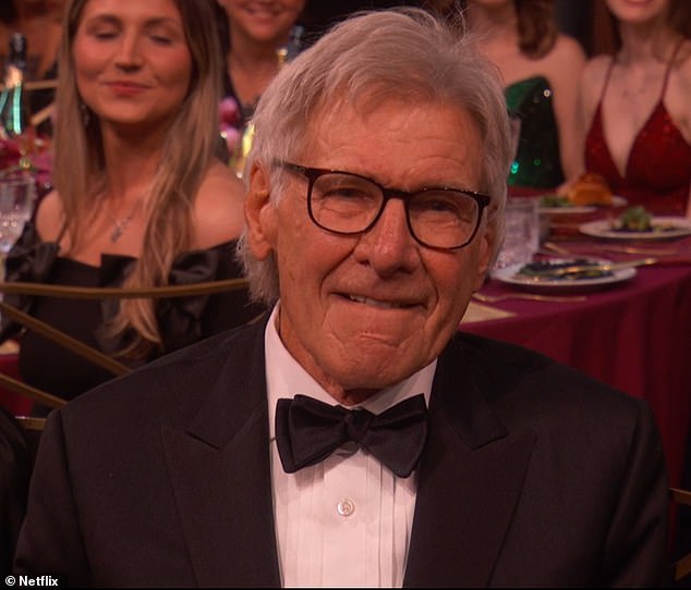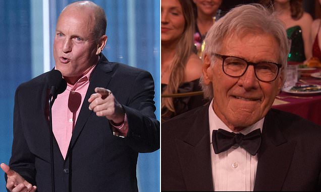 Meanwhile, Harrison Ford, 83, who was the recipient of the lifetime achievement award, was caught on camera squirming uncomfortably in his seat. His reaction seemed to reflect the audience’s growing unease as Harrelson’s monologue wandered aimlessly. The contrast between Ford’s dignified presence and Harrelson’s erratic delivery was stark.