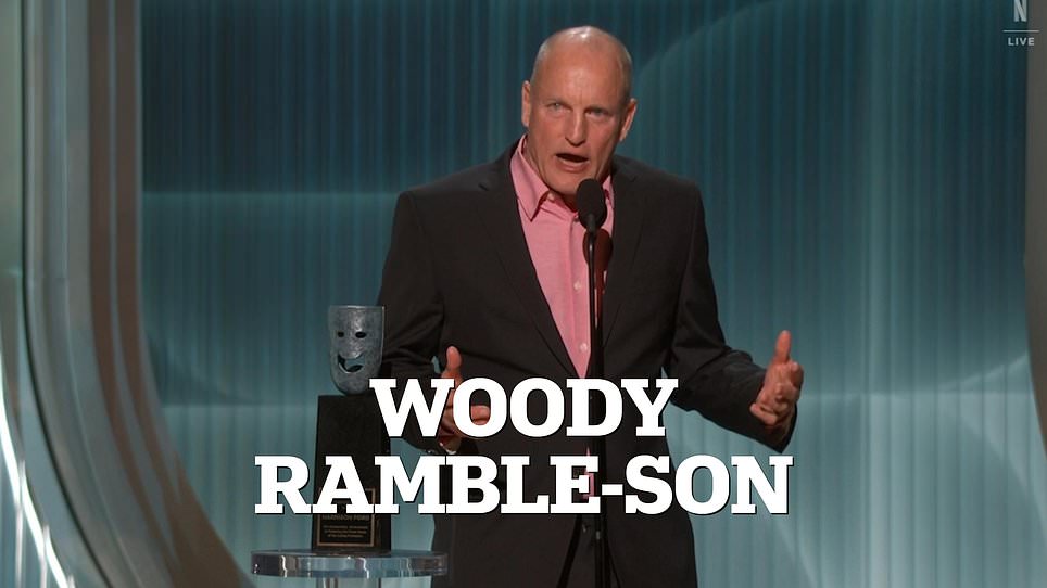 Woody Harrelson Roasted for Rambling Speech Honoring Squirming Harrison Ford at Actor Awards: ‘Is He Stoned?’